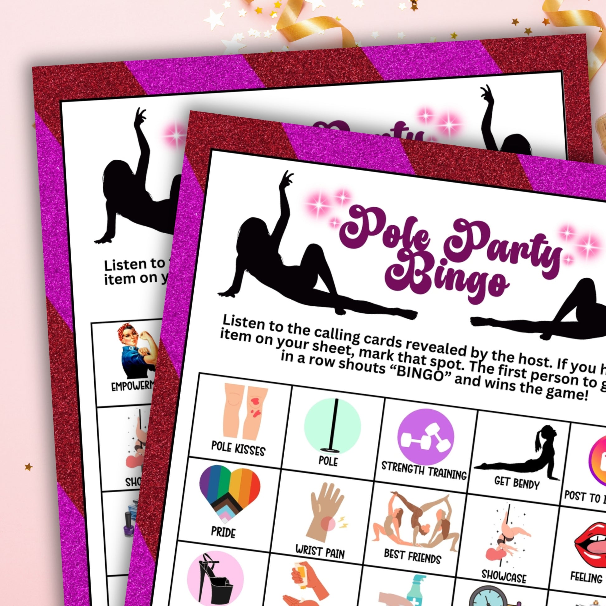 Looking for a fun and engaging activity for a feminine, girl-powered pole party, Bachelorette party, birthday gathering, or other similar event? This printable Pole Party BINGO game from Party Prints Press is just what you need!