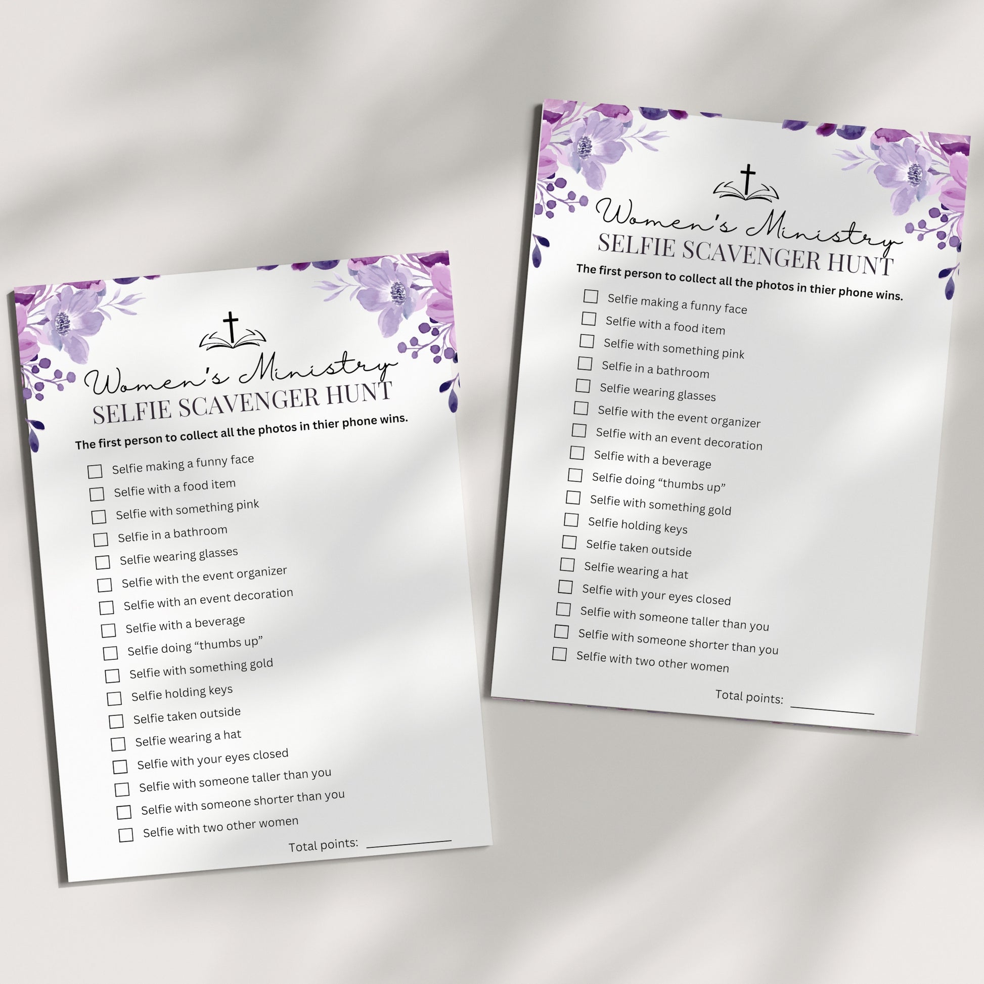 Created just for Christian women who want to fellowship with other women in an engaging and creative way, this fun twist on the classic scavenger hunt will see who is the "Selfie Queen"!