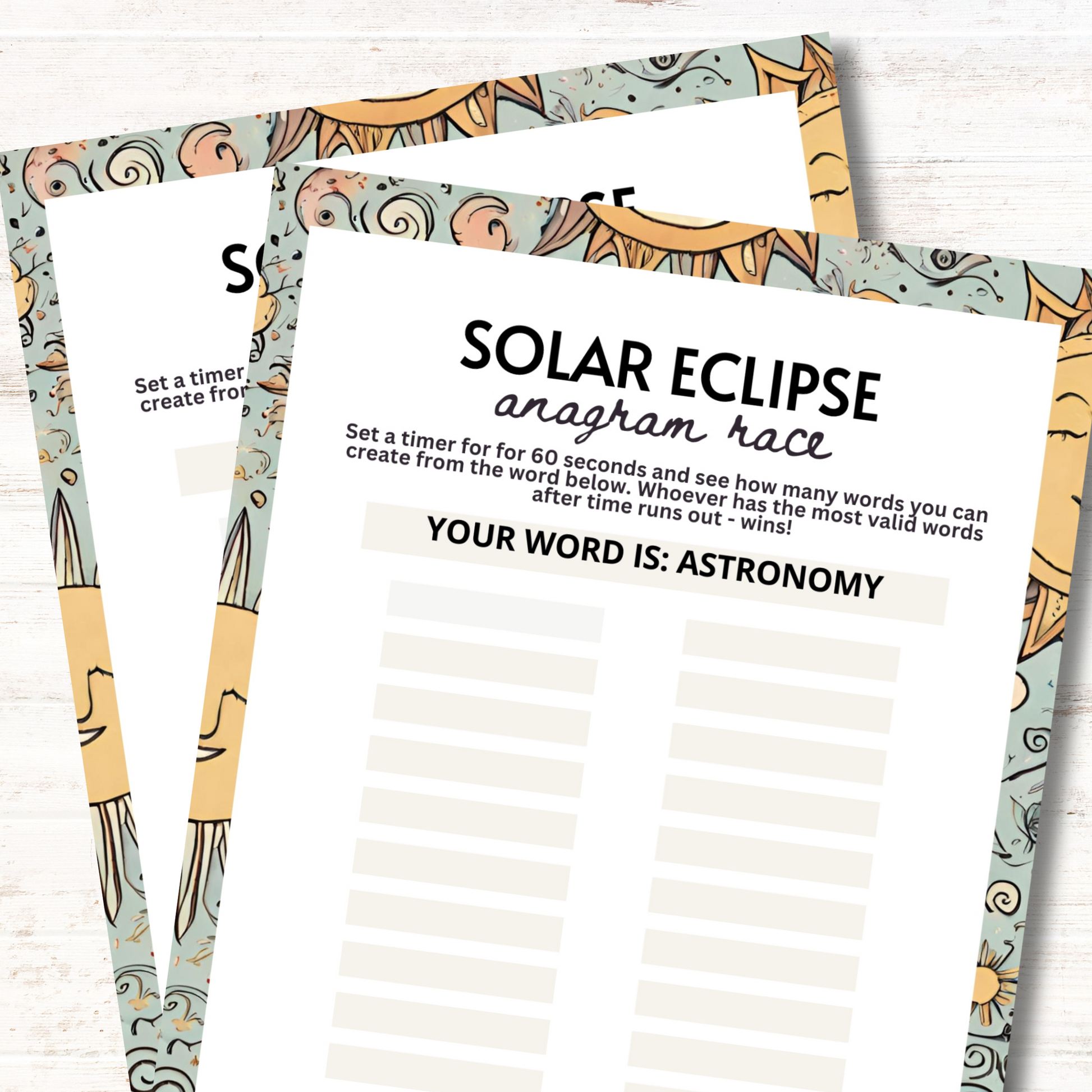 Our Solar Eclipse Party Anagram Game is the perfect addition to any gathering centered around this exciting event. It's suitable for all ages and can add an educational element to your celebration.