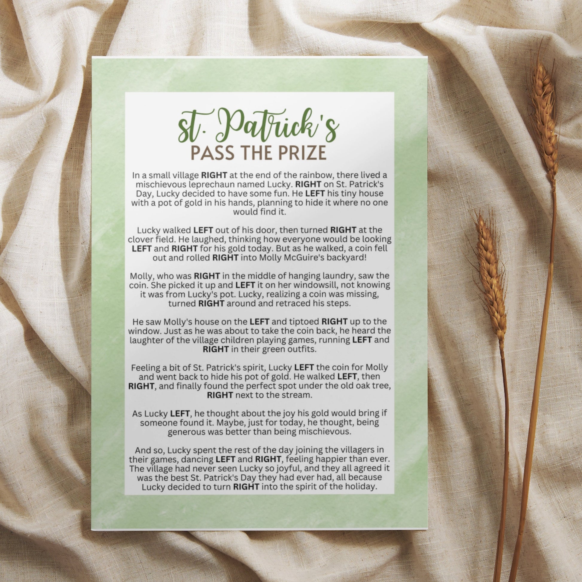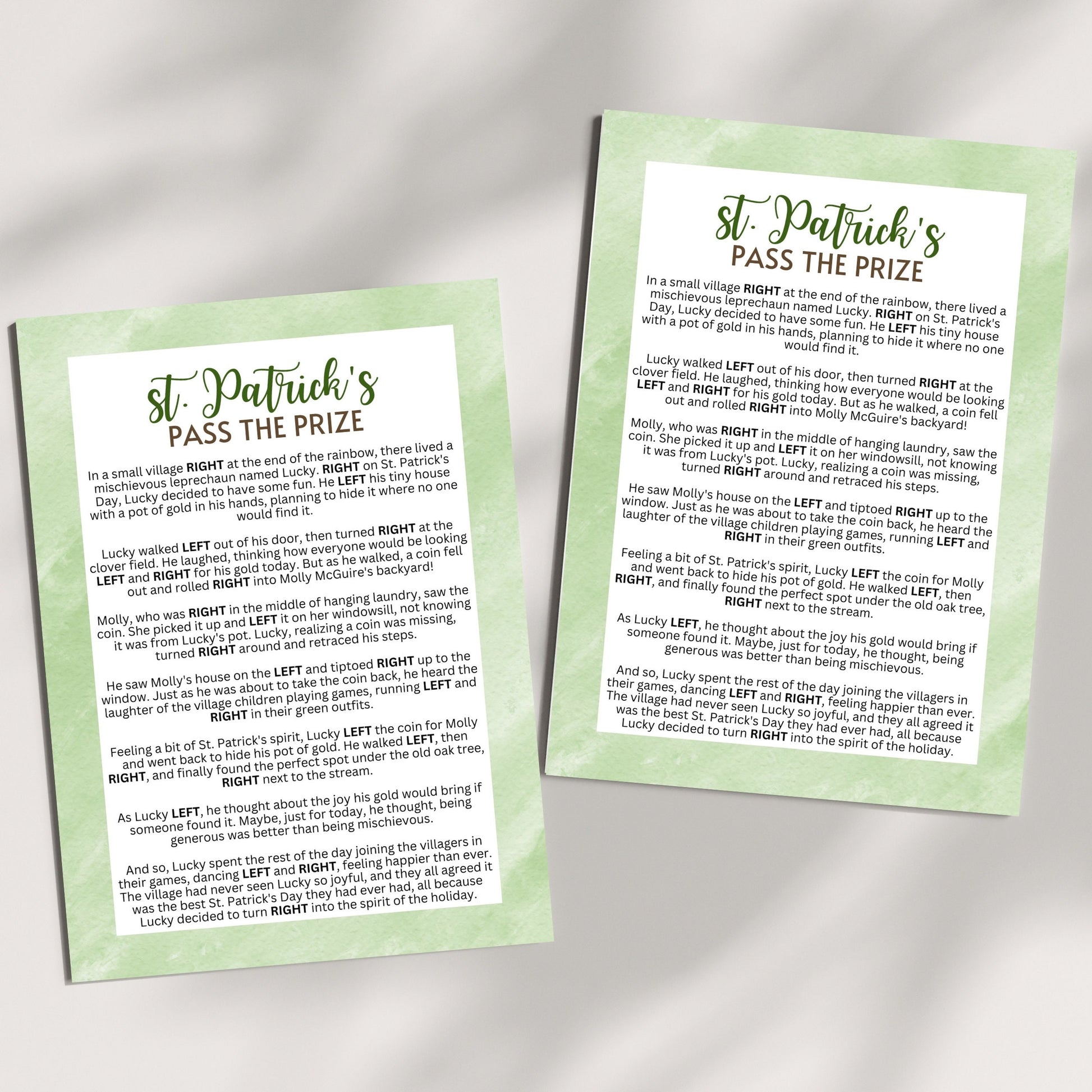 Looking for a fun and easy icebreaker game to play at your St. Patrick's Day party, work party, office event, book club meeting, pub crawl night, or dinner gathering? This simple story game allows you and guests of all ages to have fun passing a present around and seeing who ultimately wins!