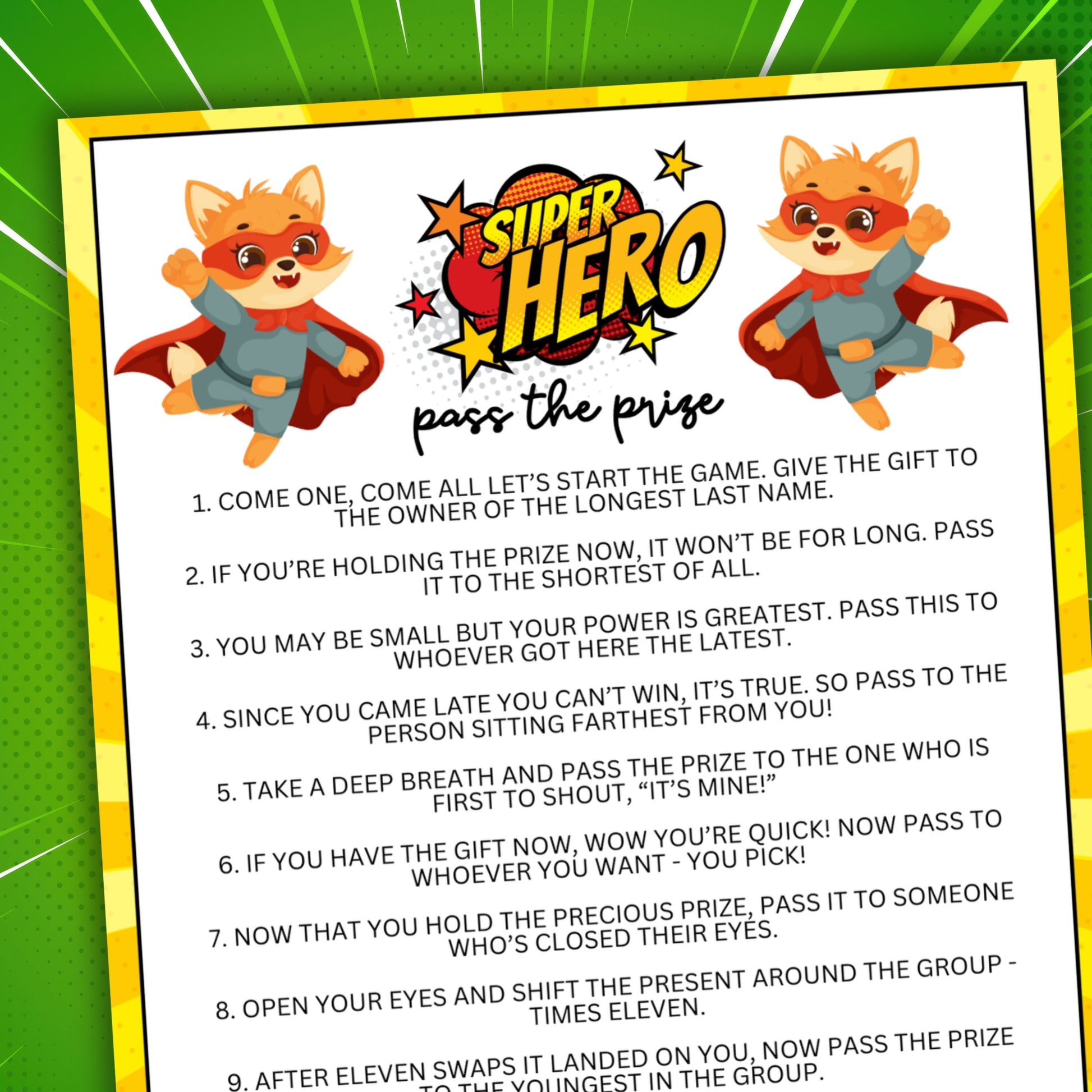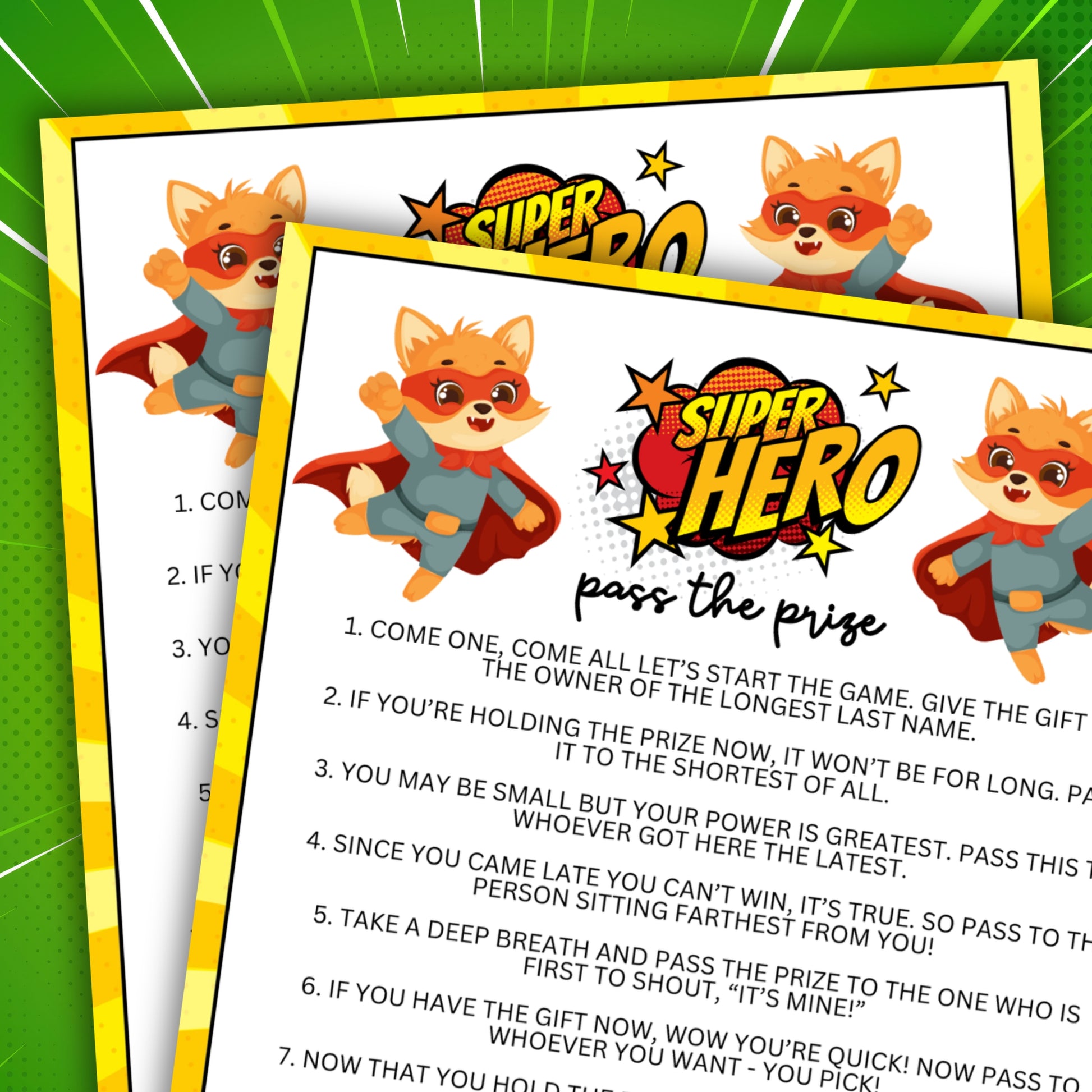 Looking for a fun and action-packed way to liven up your next celebration? The "Superhero Pass The Prize Left Right" game is an exciting and interactive activity that will have kids, teens, and tweens laughing and bonding like true heroes!