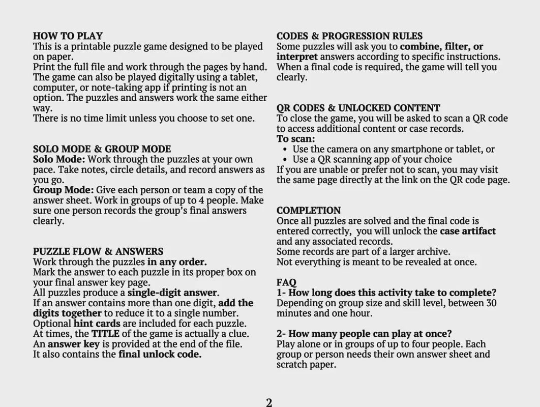 When the case is complete, you will enter a final code online to unlock a recovered record from the town archive.