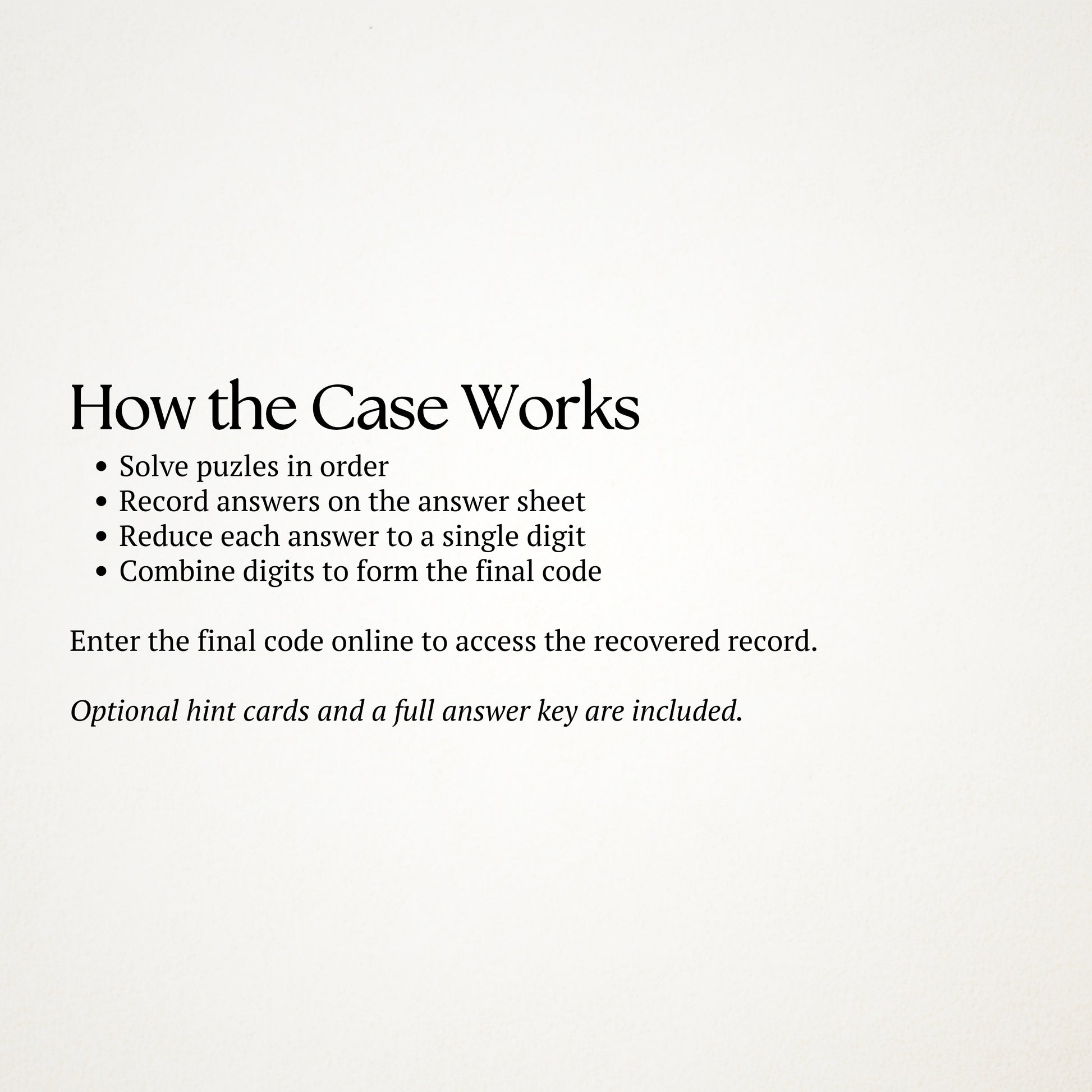 Looking for a quiet, immersive puzzle experience built around documents, records, and careful review? Something slower, more methodical, and more reflective than a traditional escape room or party game.