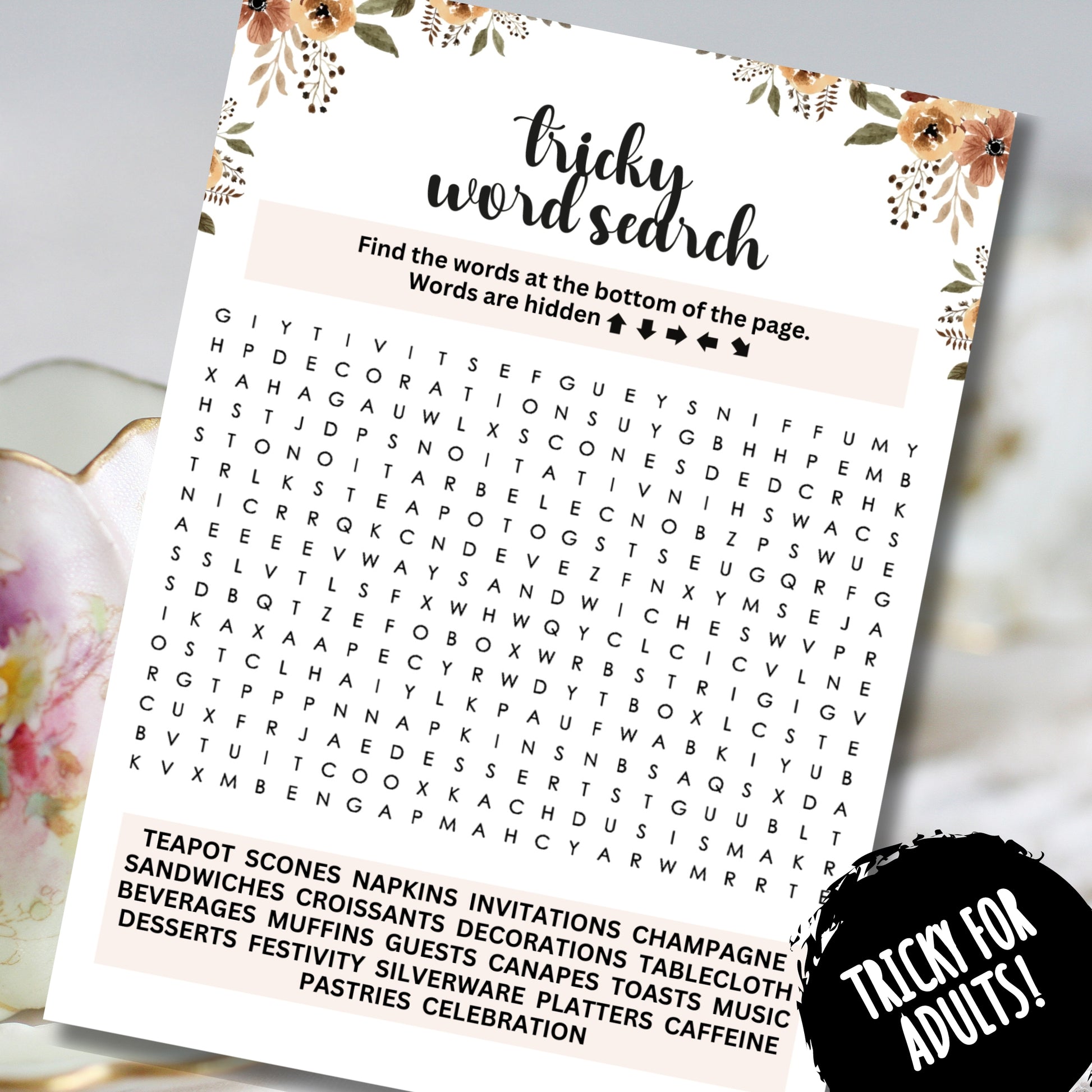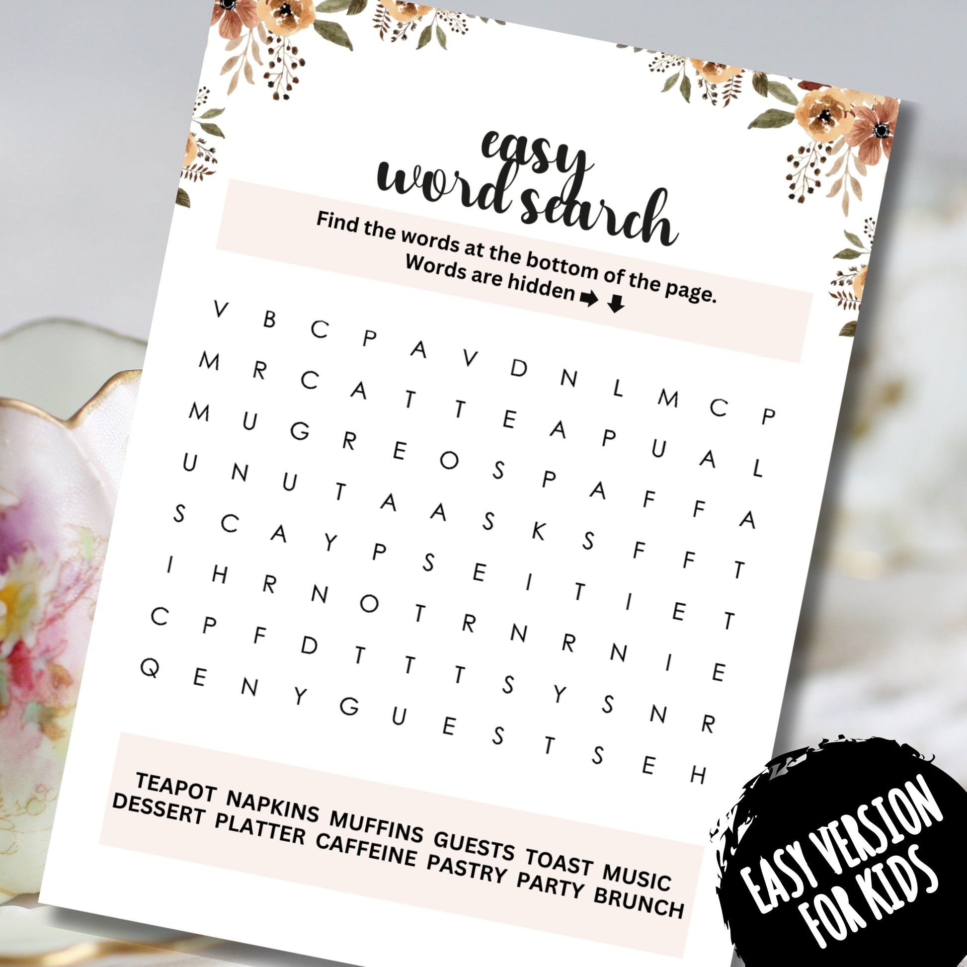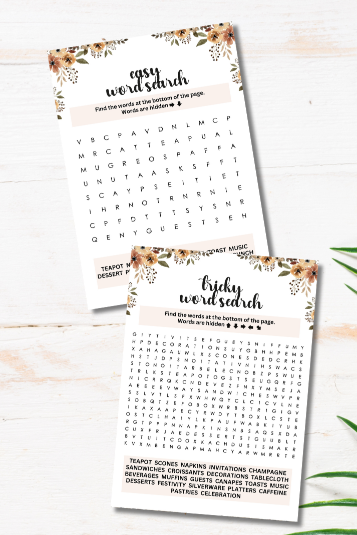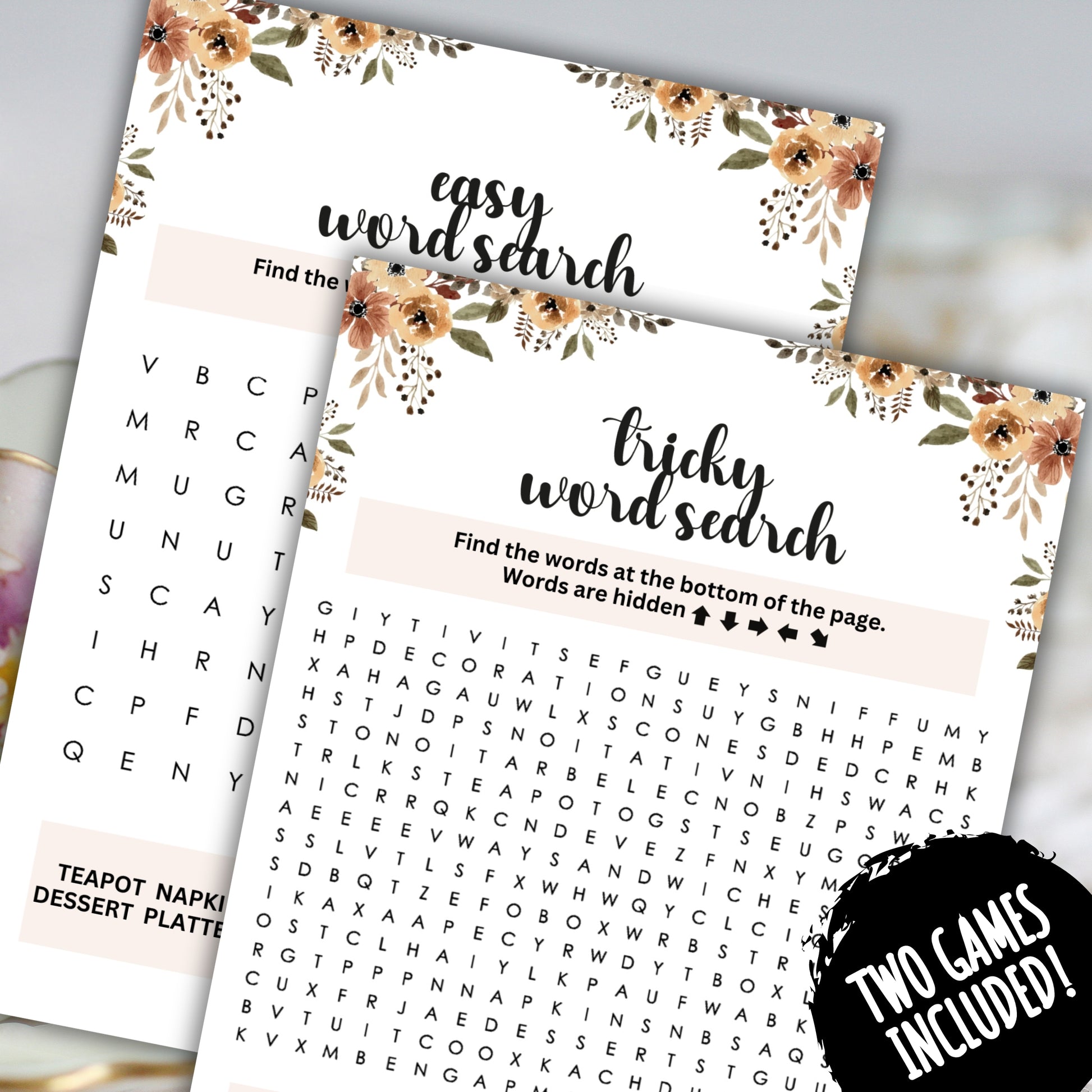 Make your party fun and engaging with this elegant, minimalist, and super-feminine PACK of TWO Tea Party Word Search Printable Games from Party Prints Press!