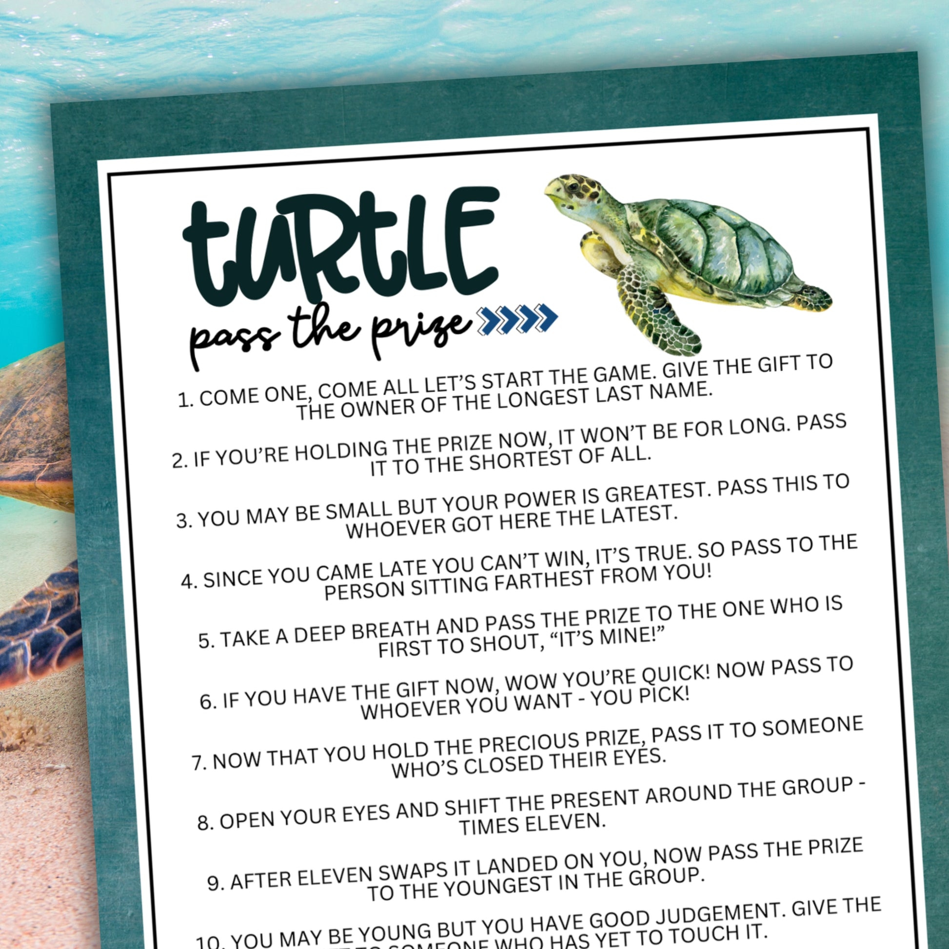 Planning an ocean-themed celebration? This Turtle Pass the Prize Left Right Game is a delightful addition to sea life birthday parties, marine-themed events, or family game nights.