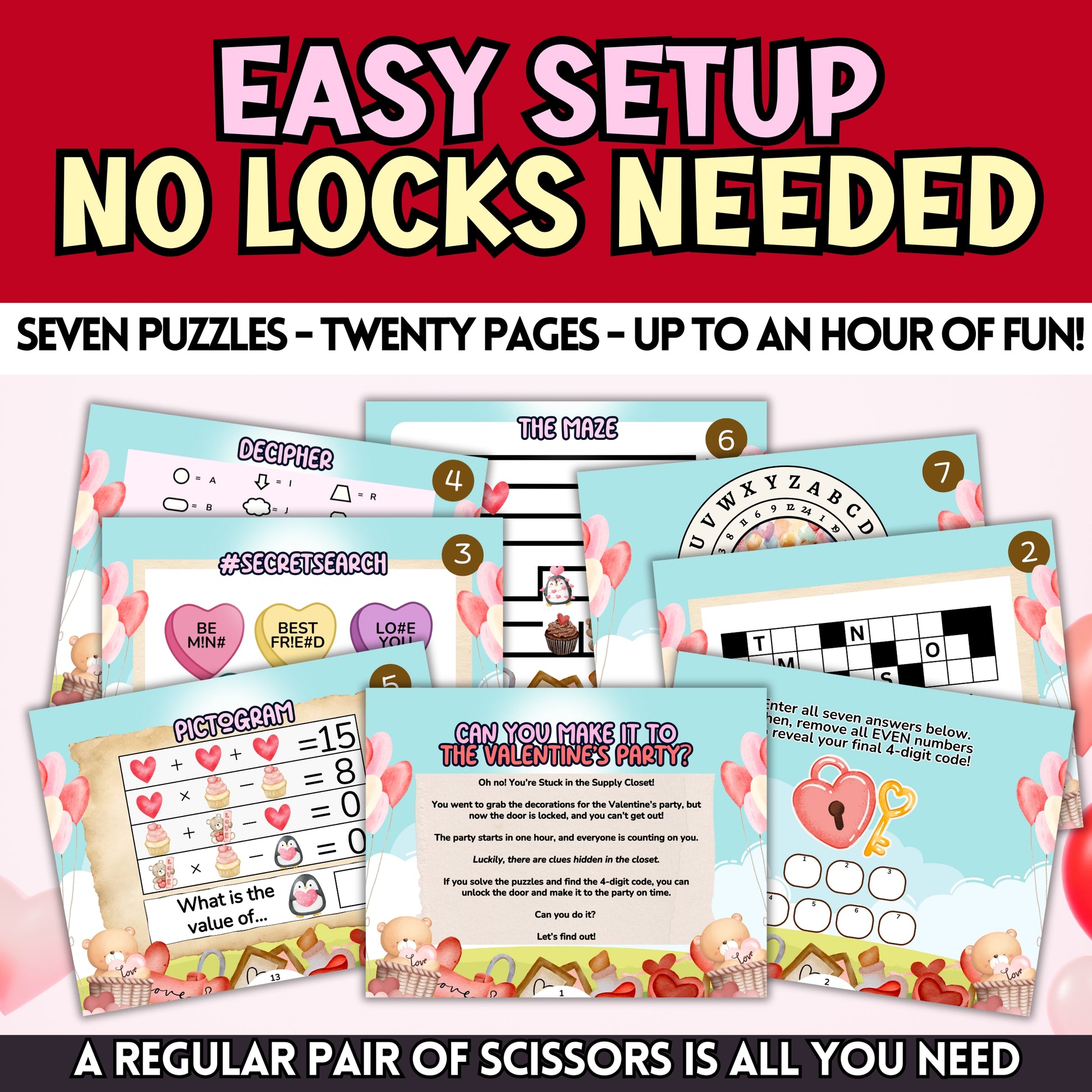 Looking for a fun, exciting, and teamwork-focused activity for your Valentine’s party, classroom event, or a unique family game night? Look no further than the Valentine’s Escape Room game from Party Prints Press!