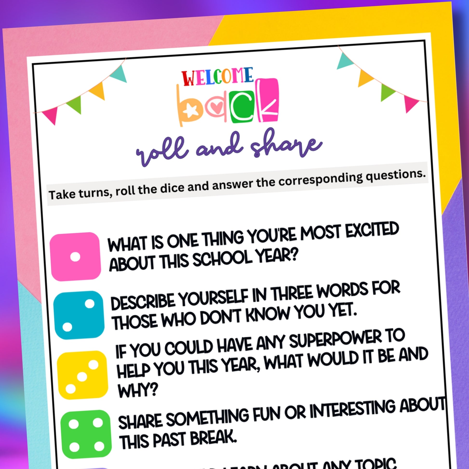 If you’re looking for a classroom game that combines fun with meaningful connections, the Back to School Roll and Share Game is the perfect choice.