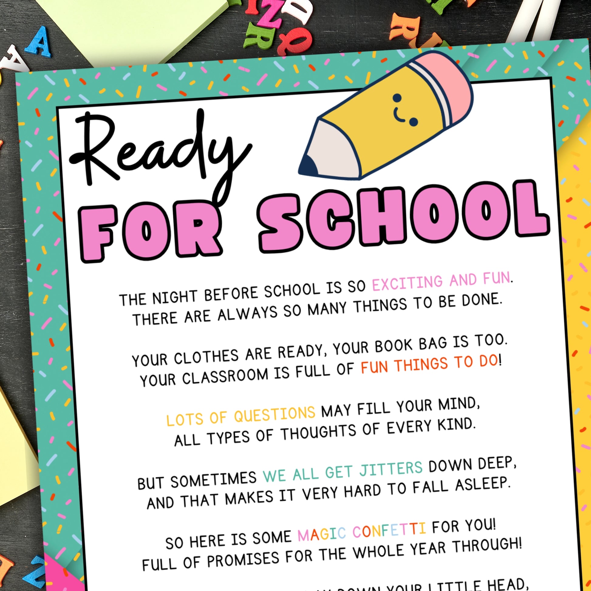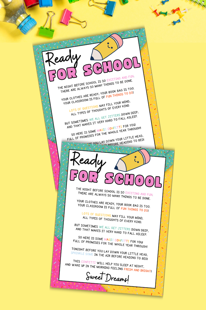 This printable “Ready For School” Confetti Poem is a sweet and simple way to ease first day jitters and create a positive back-to-school bedtime tradition.