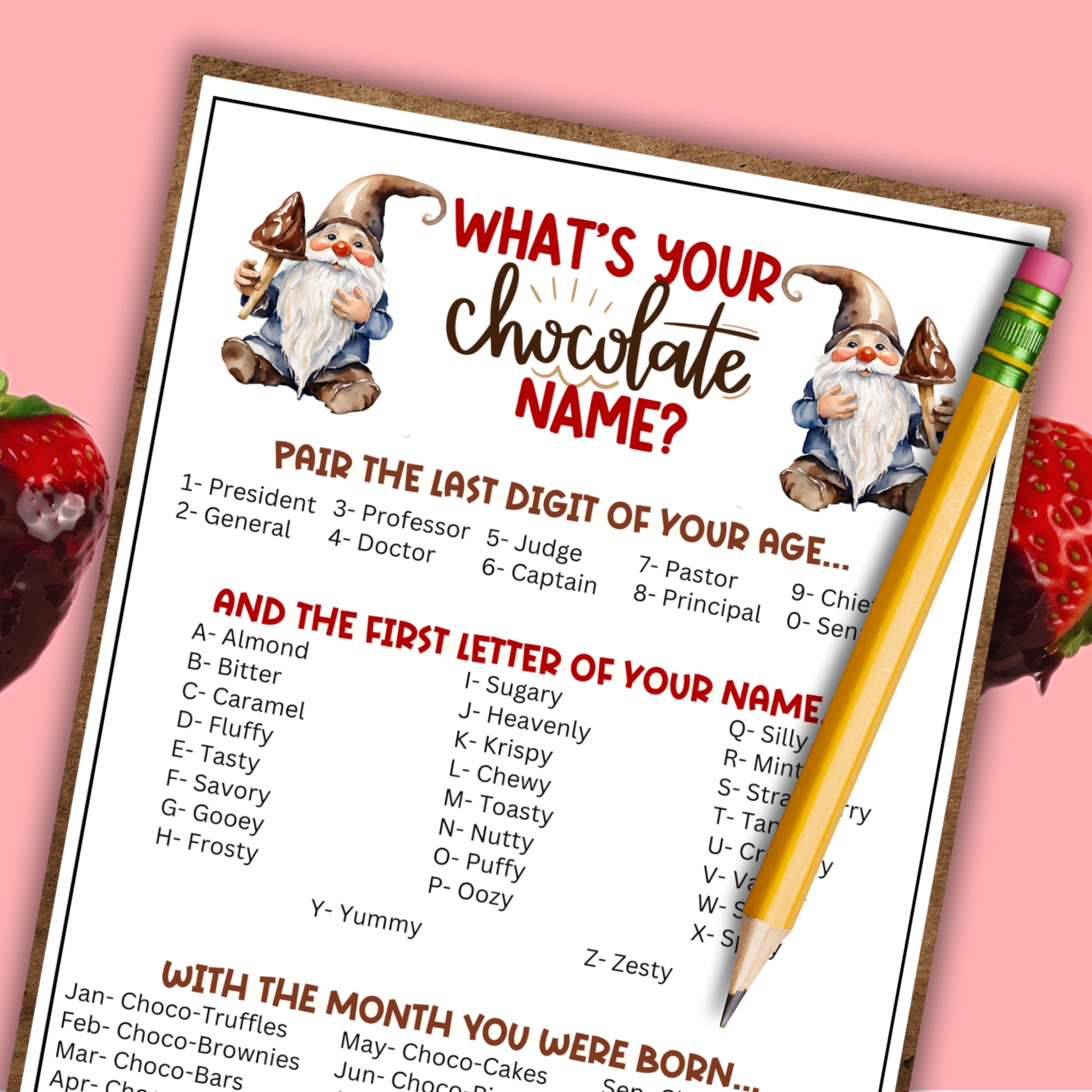Our "What's Your Chocolate Name?" generator is a delightful choice for everyone from classroom groups to home-school sessions or even at a candy bar setup!
