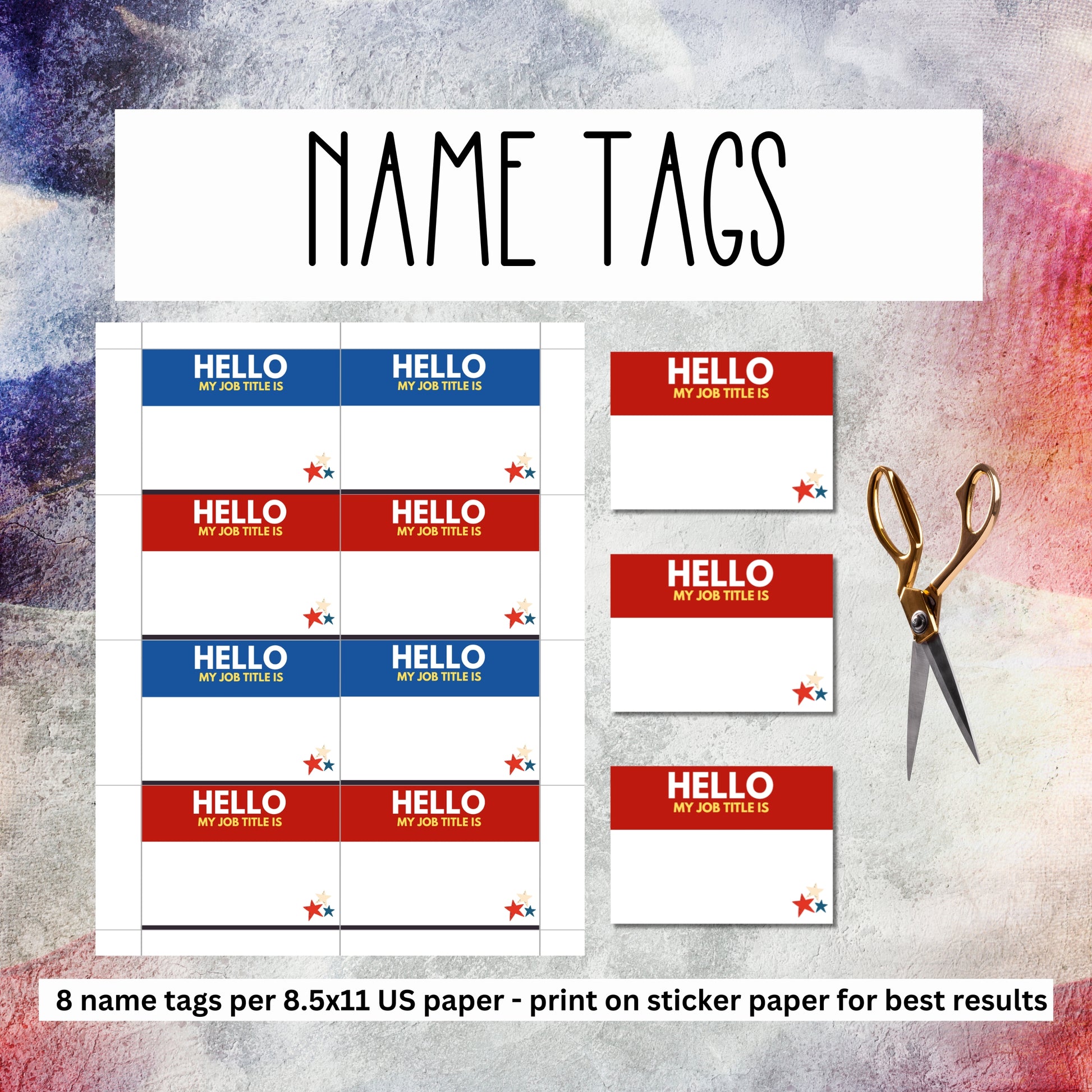 -Eight name tags on an 8.5x11 sheet (best printed on sticker-backed paper)