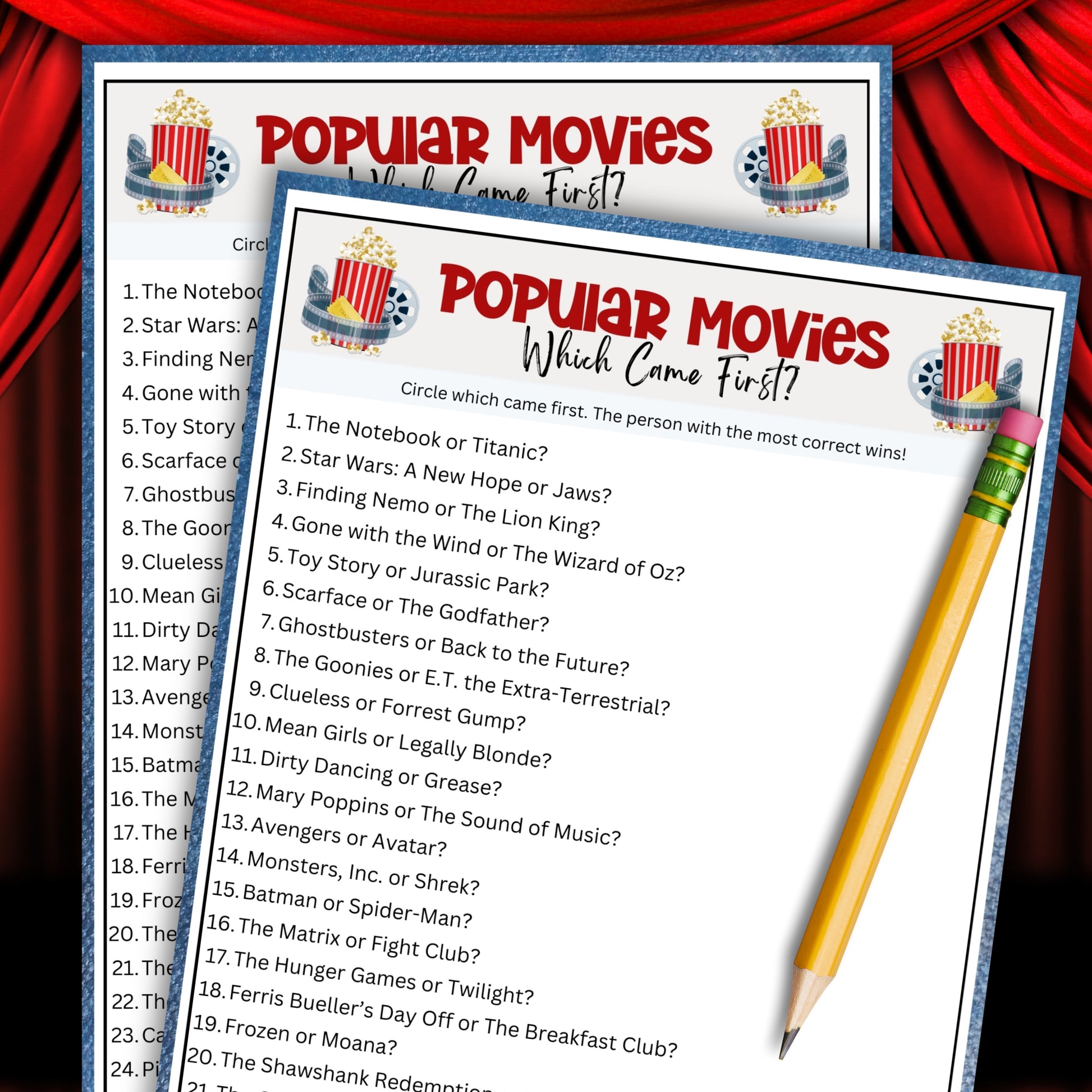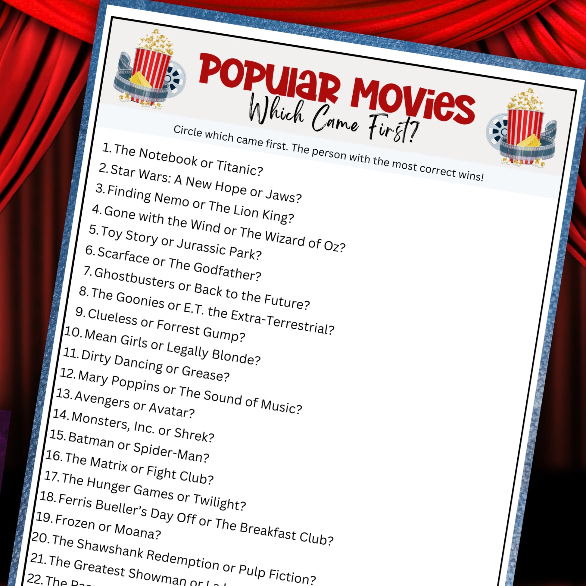 Make your celebration extra fun with this "Which Came First" Movie Trivia Game—a perfect printable for movie lovers, pop culture fans, and families alike!