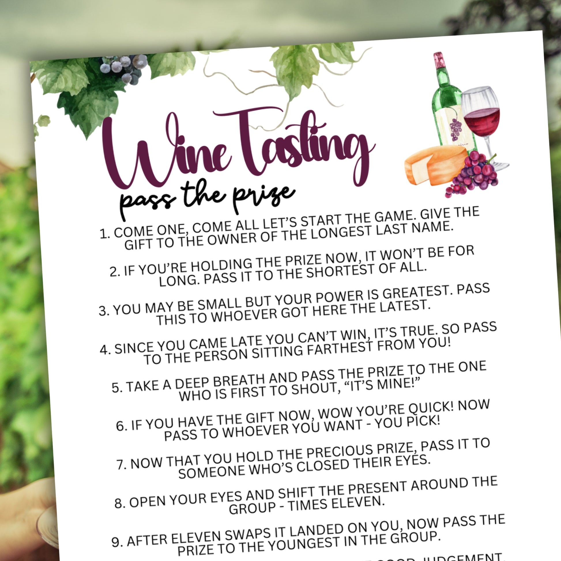 Looking for an elegant and interactive way to elevate your next wine-tasting event? The "Wine Tasting Pass The Prize Left Right" game is a sophisticated and fun activity that will have your guests engaged and entertained in no time.