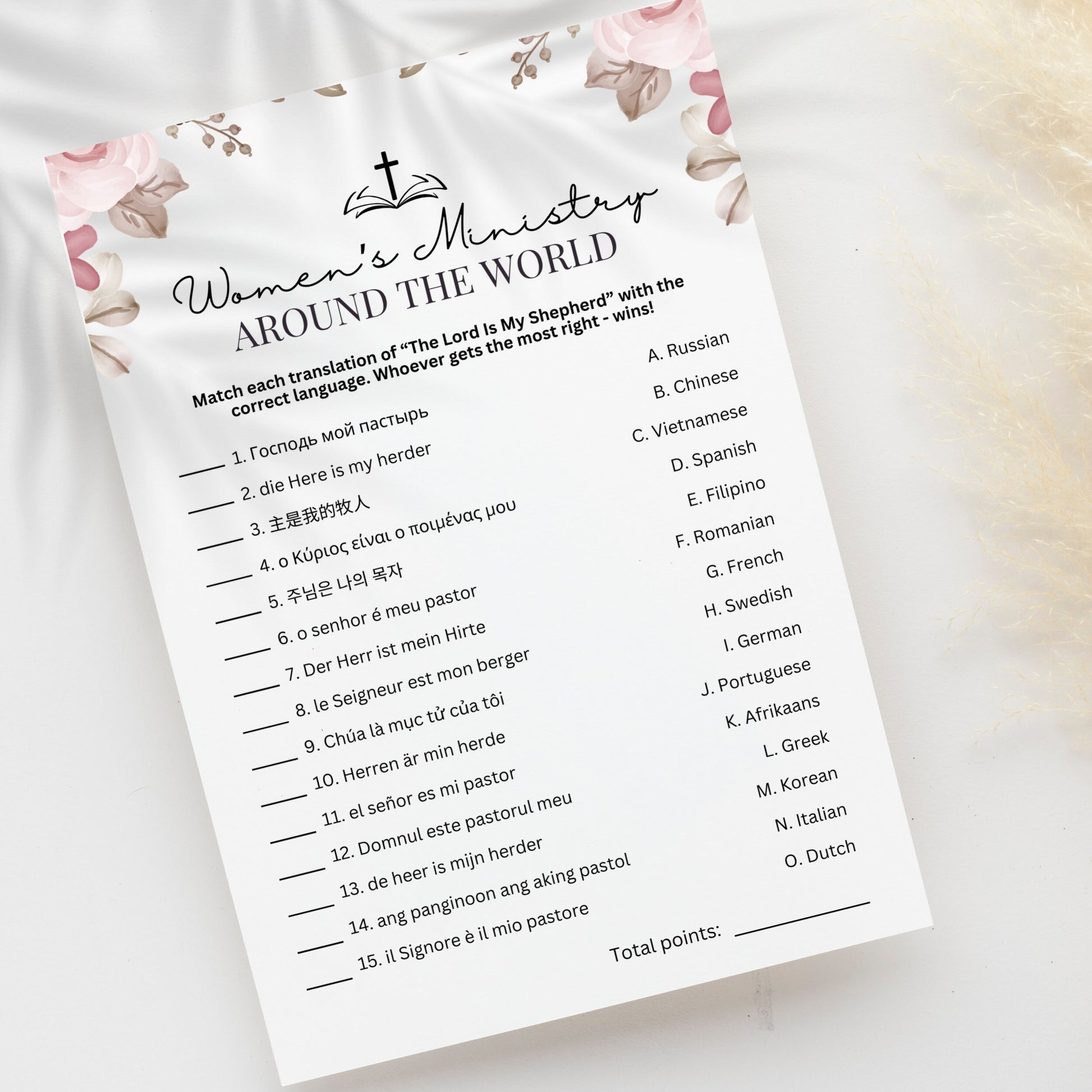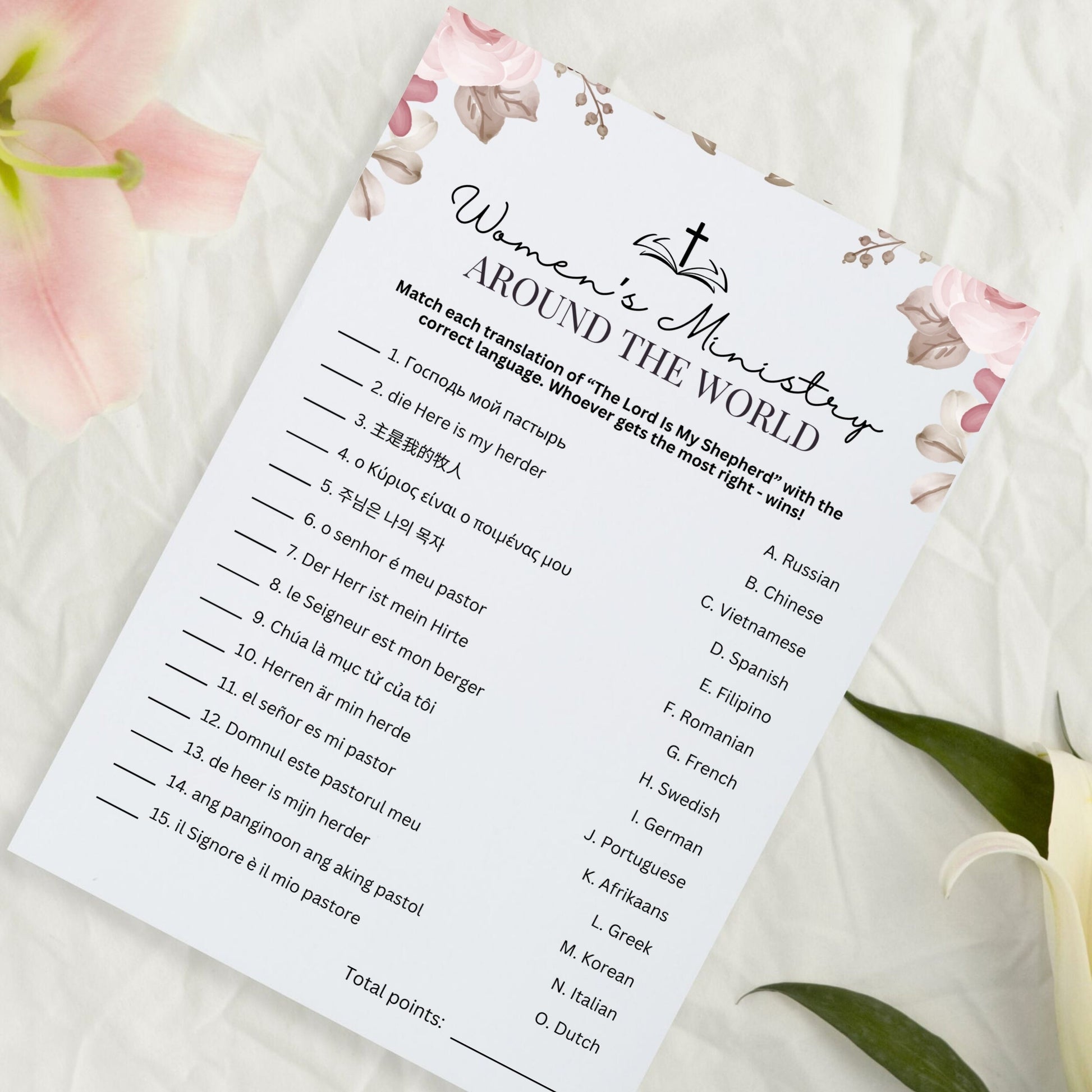 How well do your church ladies know other languages? Challenge them to this language-matching game called "Around The World".