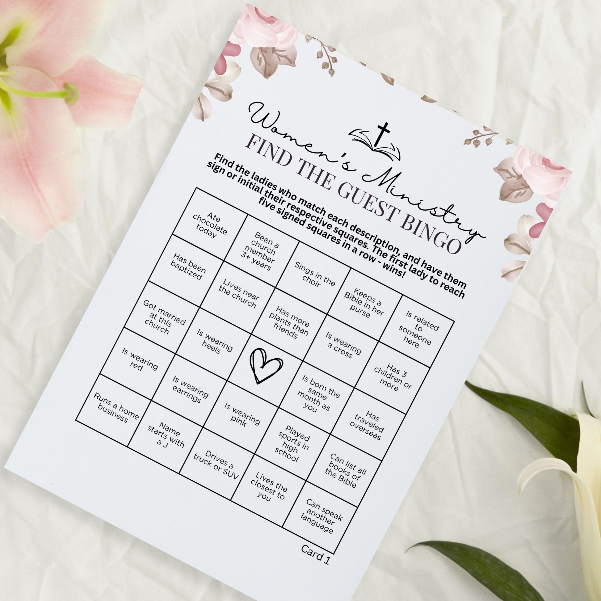Created just for Christian women who want to fellowship with others in their walk with God (and have fun too!), this Women's Ministry Find The Guest BINGO card game is just what you've been looking for.