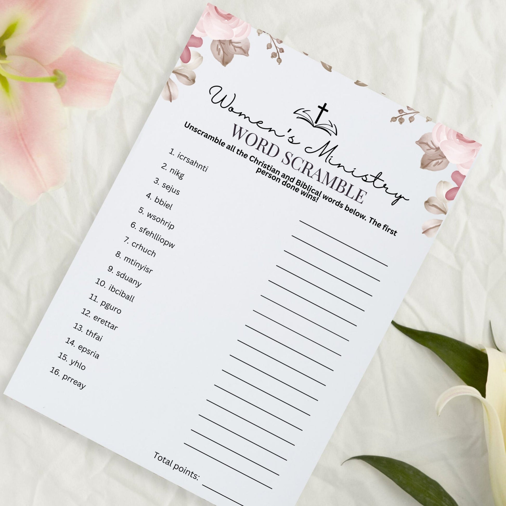 Created just for Christian women who want to fellowship with other women in an engaging and creative way, this Christian Word Scramble game is sure to be a big hit!