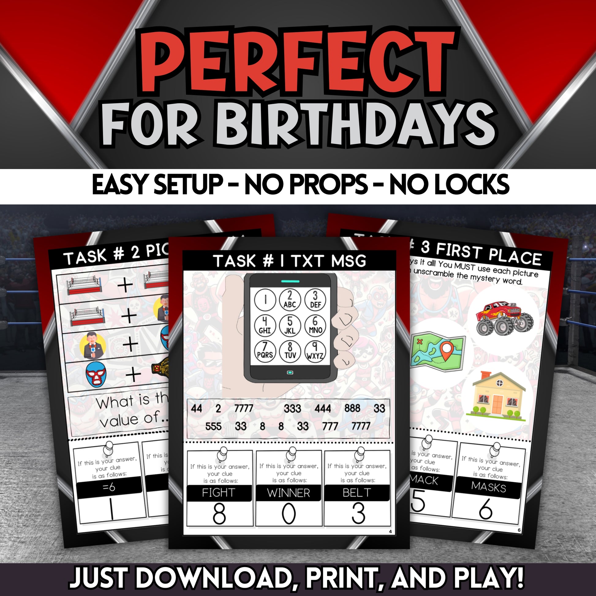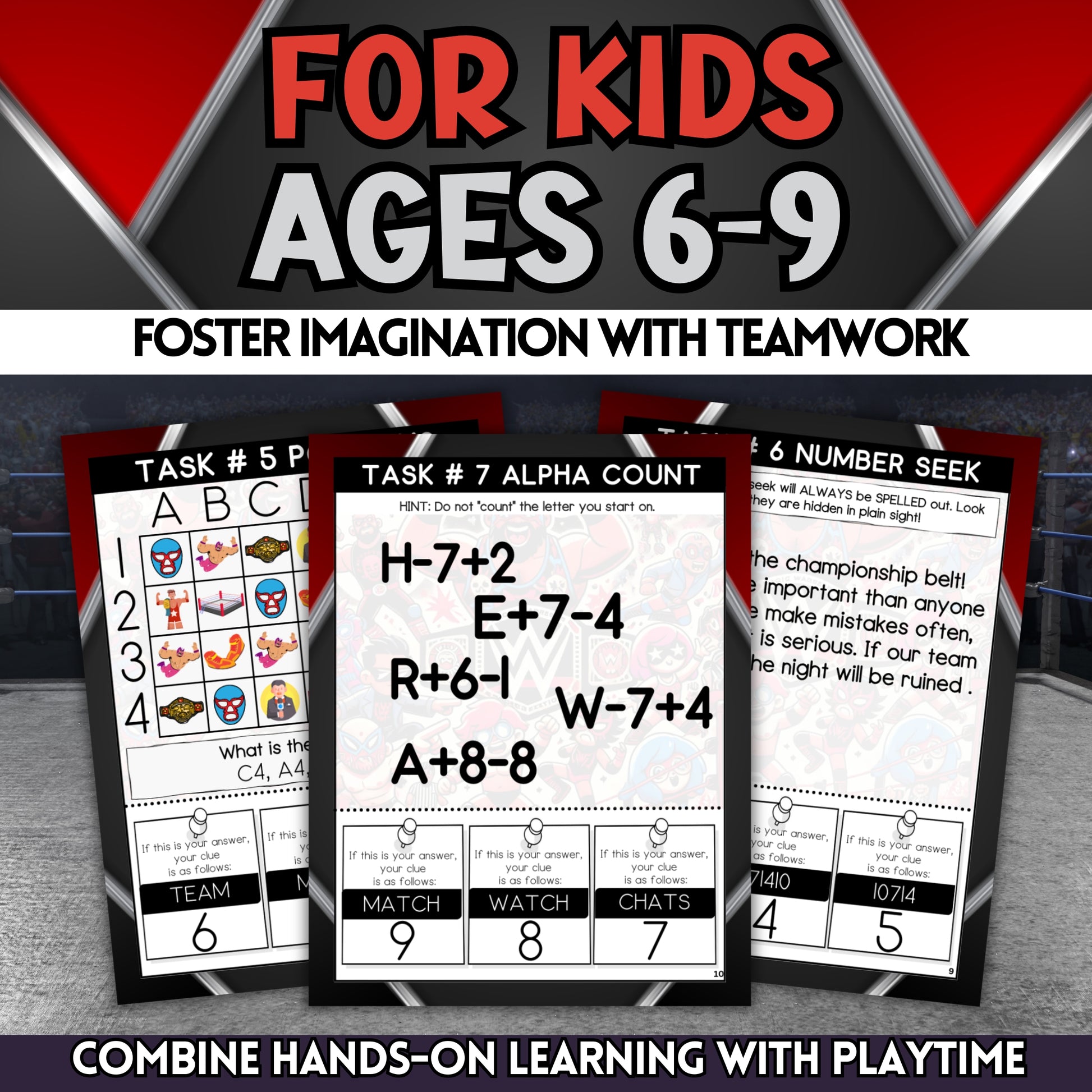 Specially designed for children aged 6-9, this printable escape room game turns any space into a high-energy wrestling arena where fun and puzzles collide!