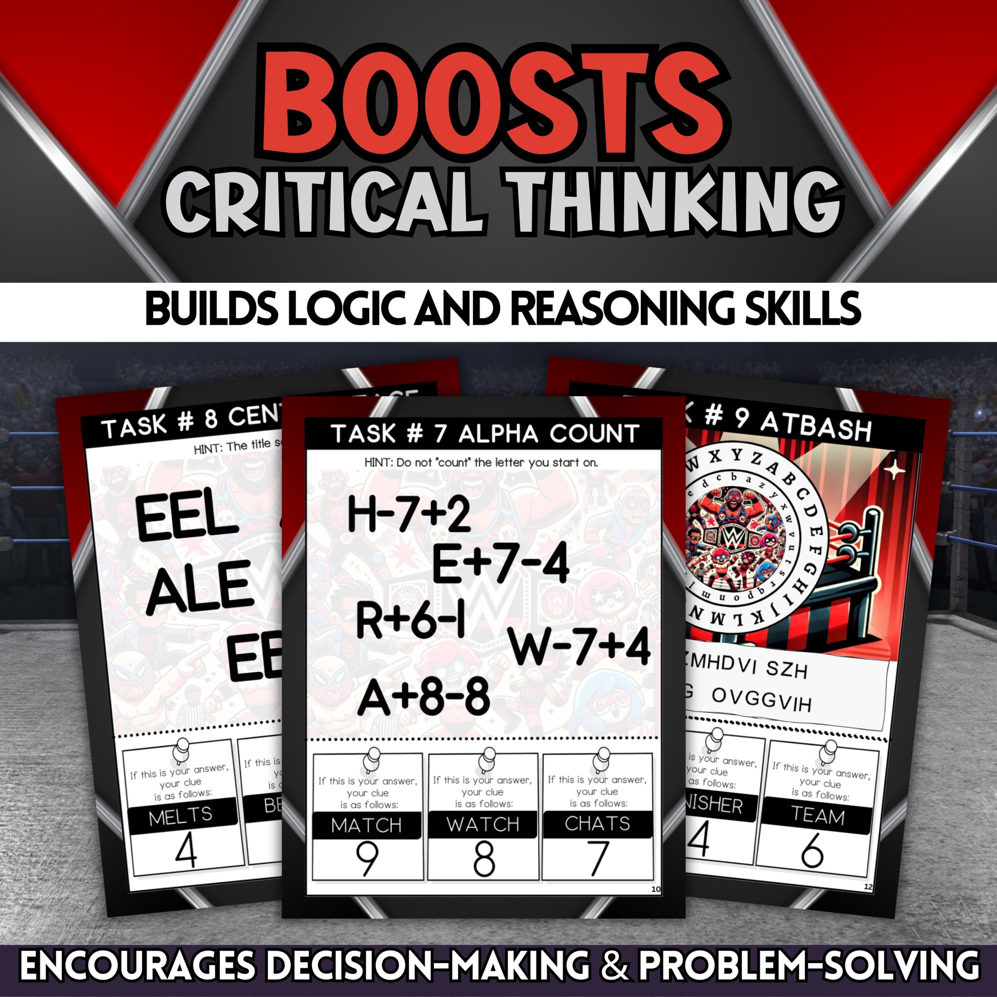 -9 wrestling-themed puzzle challenges that enhance critical thinking and collaboration